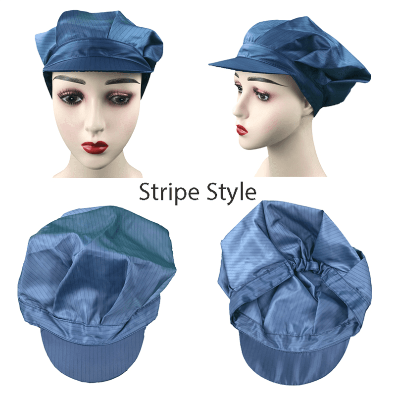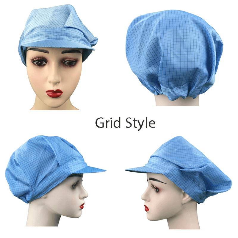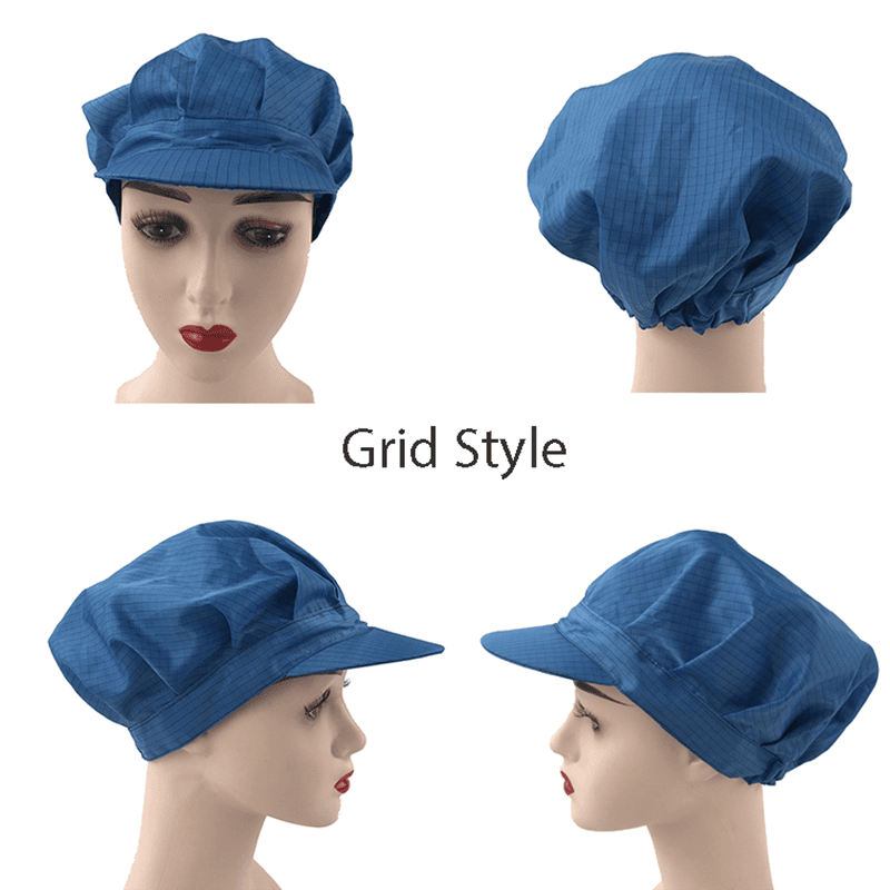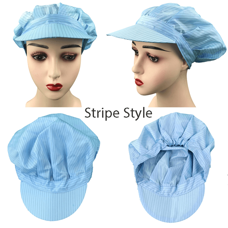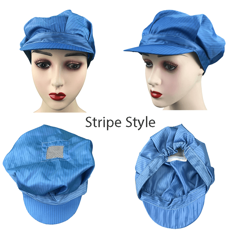 ESD Peaked Cap se aplică în linia de asamblare a semiconductorilor, laborator, produse PCB etc. Este conceput pentru a proteja împotriva acumulării statice, care ar putea oferi o disipare continuă și constantă a încărcării.