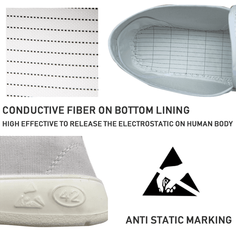 Pantofii anti-statici ESD sunt confecționate din PU sau PVC, iar tălpile sunt confecționate din materiale anti-statice și fără alunecare, care pot descărca în mod eficient energia electrică statică și pot evita pericolele potențiale cauzate de acumularea statică de energie electrică. Încălțămintea sunt concepute științific pentru a se asigura că energia electrică statică poate fi introdusă fără probleme în pământ, protejând astfel siguranța echipamentelor de producție și a produselor electronice. Pentru a obține cel mai bun efect anti-static, pantofii anti-statici trebuie să fie folosiți împreună cu îmbrăcăminte anti-statică, talpă anti-statică și șosete anti-statice, precum și sisteme anti-statice pentru a forma o soluție anti-statică completă.