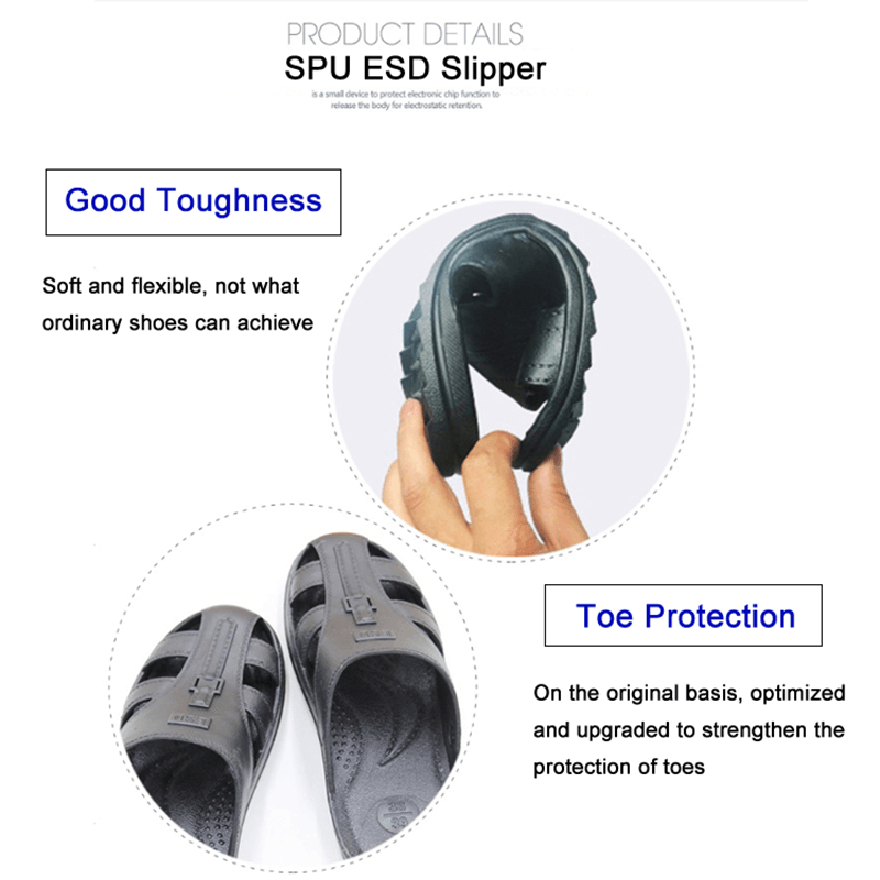 În mediile de lucru, cum ar fi fabricarea echipamentelor electronice, asamblarea și întreținerea, descărcarea electrostatică (ESD) poate provoca daune grave dispozitivelor sensibile, cum ar fi componente electronice și plăci de circuit. Papucii anti-statici ESD sunt concepute pentru a preveni generarea și eliberarea de energie electrică statică din corpul uman, și în siguranță electricitatea statică directă la sol, evitând astfel amenințarea potențială a energiei electrice statice pentru echipamentele electronice. Această măsură de protecție poate proteja eficient componentele electronice de mare valoare și poate reduce daunele și întreruperile de producție cauzate de descărcarea electrostatică.