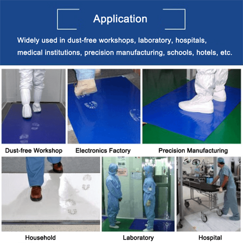 Înlocuire ușoară: Fiecare covoraș este compus din mai multe straturi de film. Atunci când stratul de suprafață este contaminat, utilizatorul trebuie doar să smulgă un strat pentru a expune stratul curat, simplificând procesul de curățare și înlocuire.